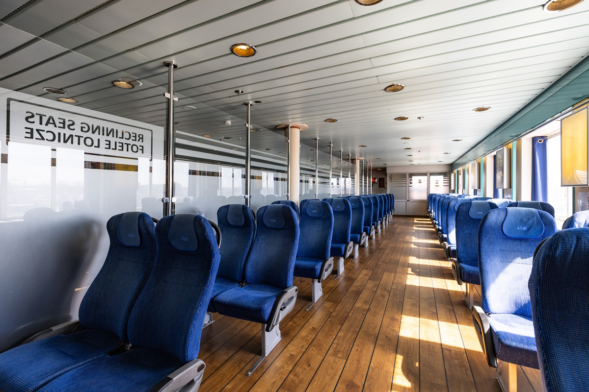During the journey, passengers can enjoy a rich gastronomic offer, including two à la carte restaurants, a cafeteria and several bars. The ferry also features an extensive entertainment area, including a disco, a pub and themed bars. An additional advantage is the onboard shop with a wide selection of products at attractive prices.