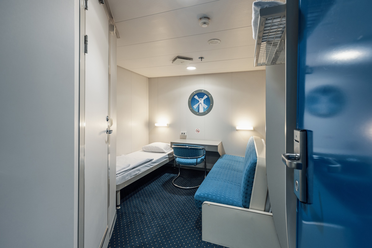 There are 212 comfortable cabins on board, providing accommodation for up to 618 passengers. Each cabin is equipped with a private bathroom and air conditioning, ensuring a pleasant stay during both day and night crossings.
