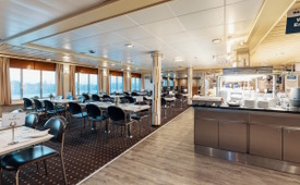 On board m/f Skania, passengers can enjoy a varied dining offer, suitable both for those looking for a relaxed meal and those who prefer quick snacks during the journey. More than 400 people can be served in the dining areas at the same time.